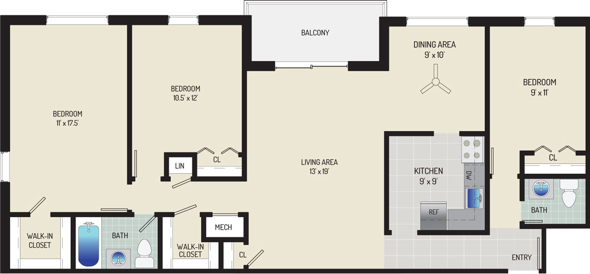 3 BR + 2.5 BA Townhome 3 Beds 2.5 Baths 1335 sqft $2,348 - $2,498 per month Inquire for Availability View Details